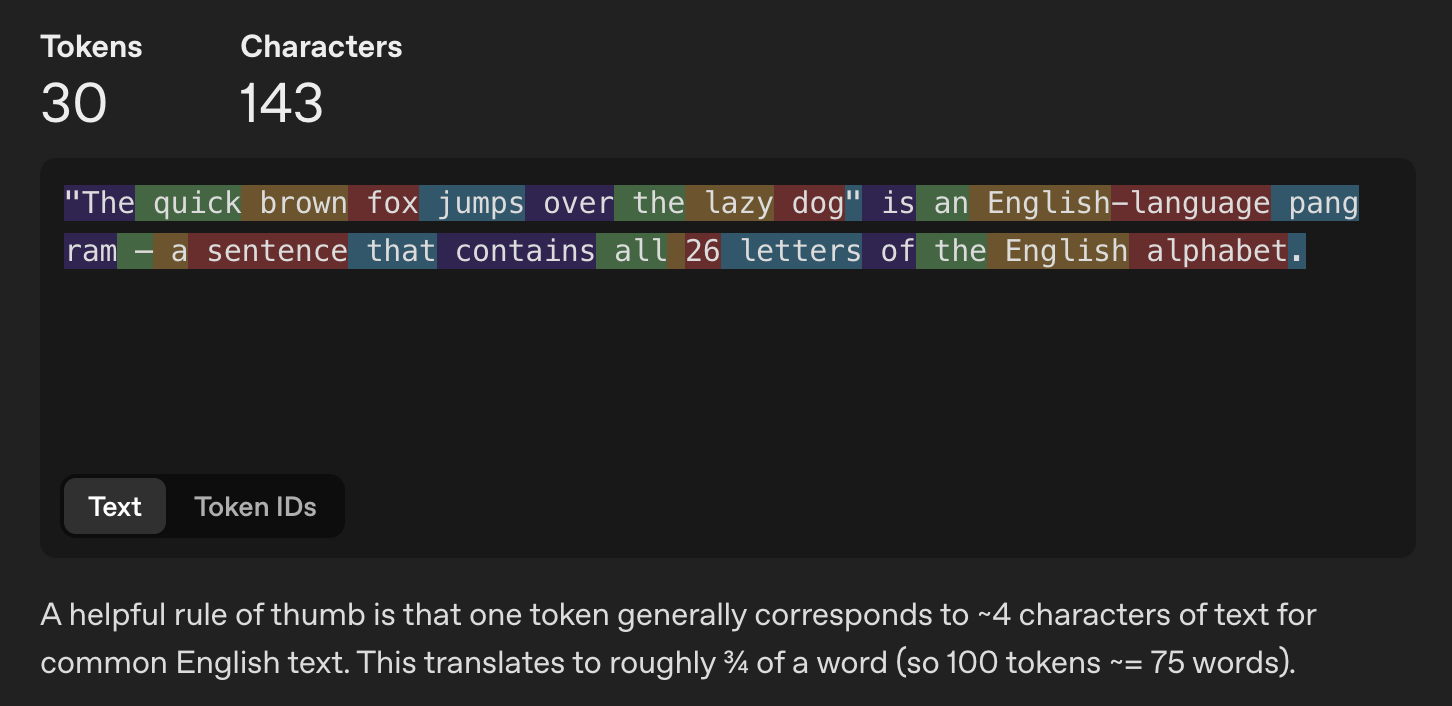 When you send a prompt, the system tokenizes it (breaks text into token units like below), then a transformer model (more on that here), processes the full sequence to predict the next token.